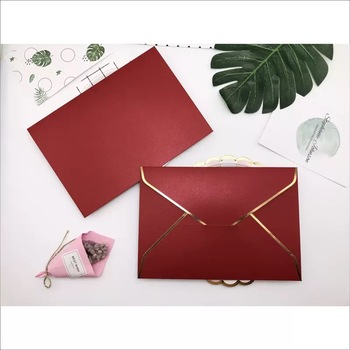 Sobre de papel perlado rojo de tamaño personalizado para tarjetas de embalaje, sobre de papel de invitación de negocios con lámina dorada estampada en caliente